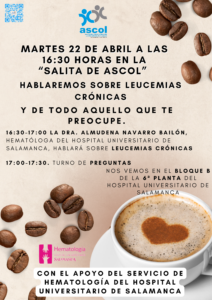 Será presencial en la salita de ASCOL que está en el Hospital Universitario de Salamanca, Bloque B, planta 6ª