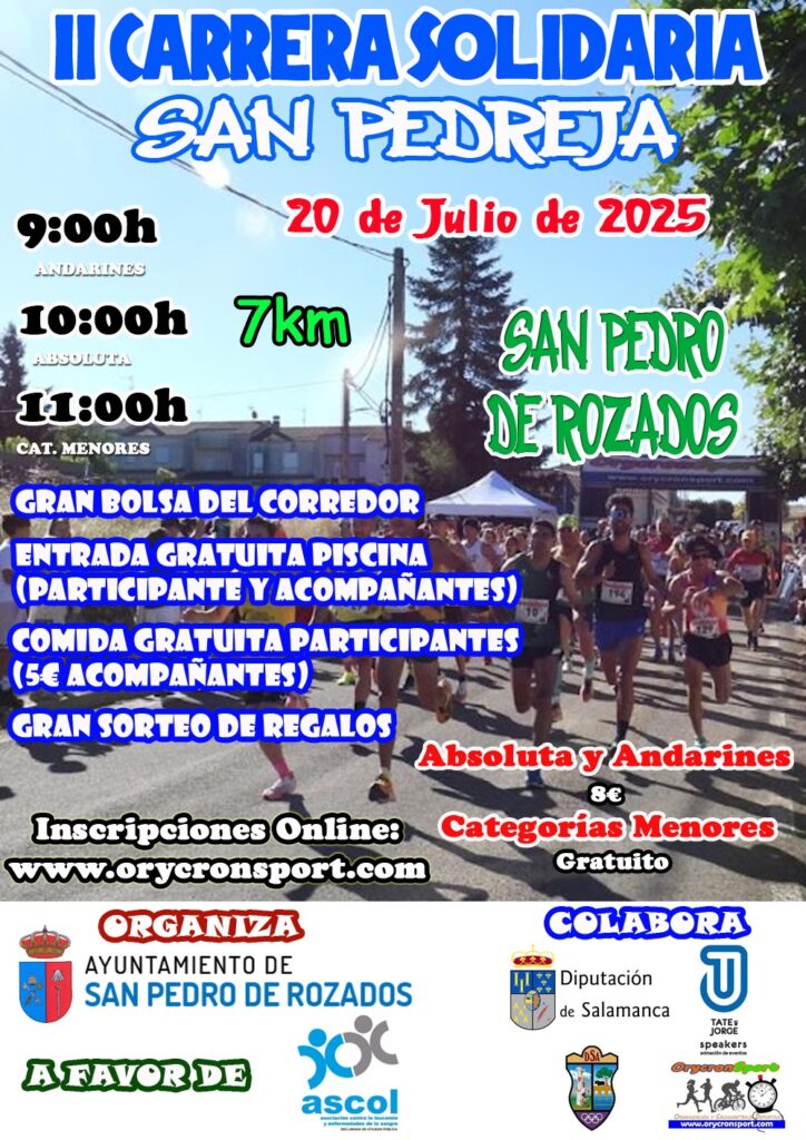 El próximo 20 de julio, San Pedro de Rozados acogerá la II Carrera Solidaria San Pedreja, un evento deportivo y solidario en favor de ASCOL (Asociación Contra la Leucemia y Enfermedades de la Sangre de Castilla y León). La cita tiene como objetivo recaudar fondos y concienciar sobre las necesidades de los pacientes oncohematológicos y sus familias.
